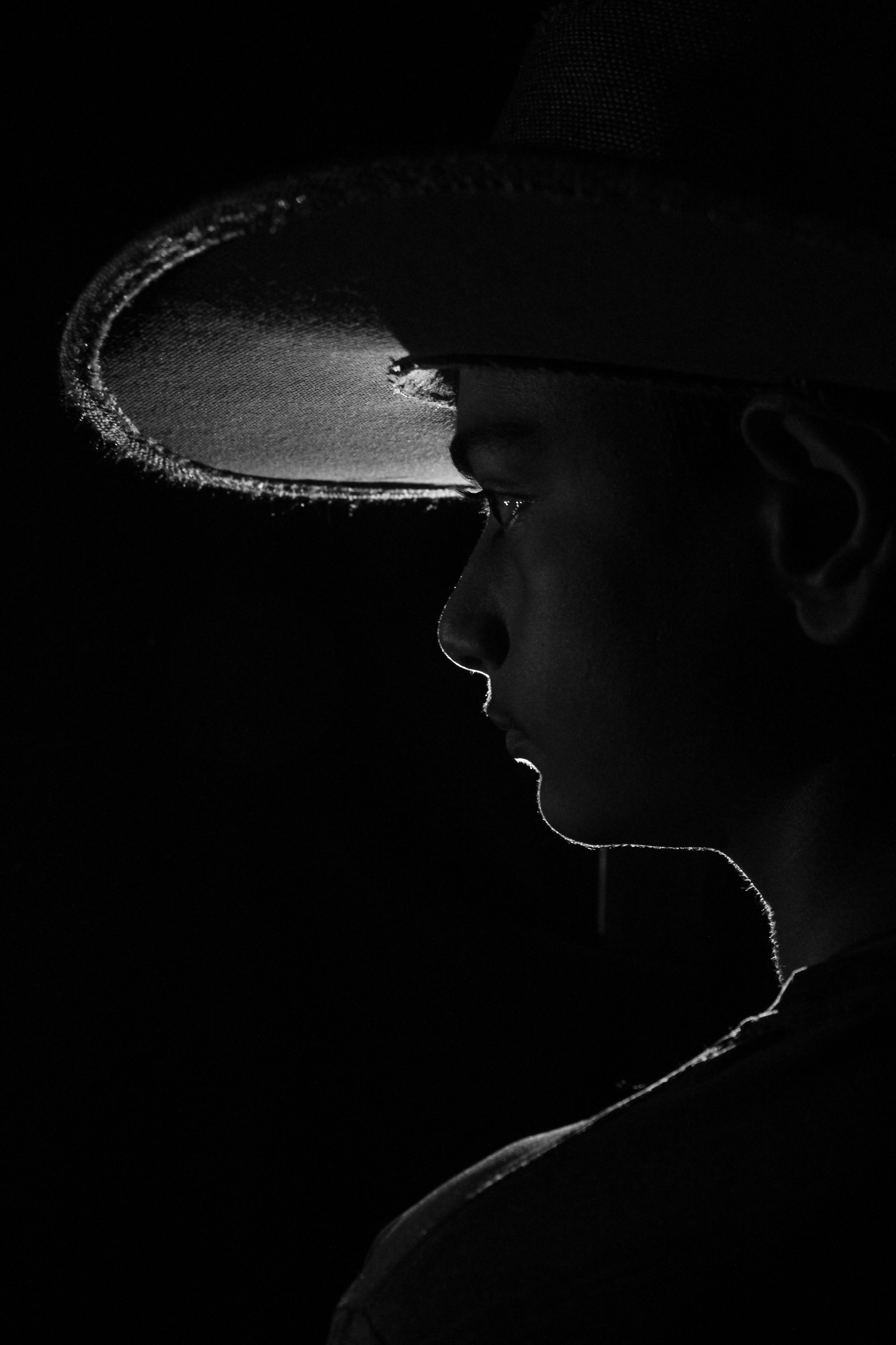 Played around with backlighting and got this. Something about the rim light catching just the edges felt right - the hat, the jawline, everything else disappearing into black. One of those shots where less is more.